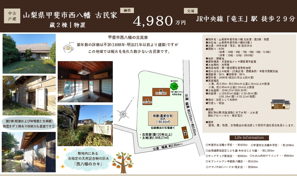 ◎築年:不詳(登記簿)明治21年(1888年ー築136年以上)