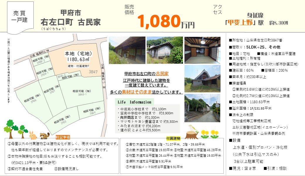 【物件名】:甲府市右左口町 古民家