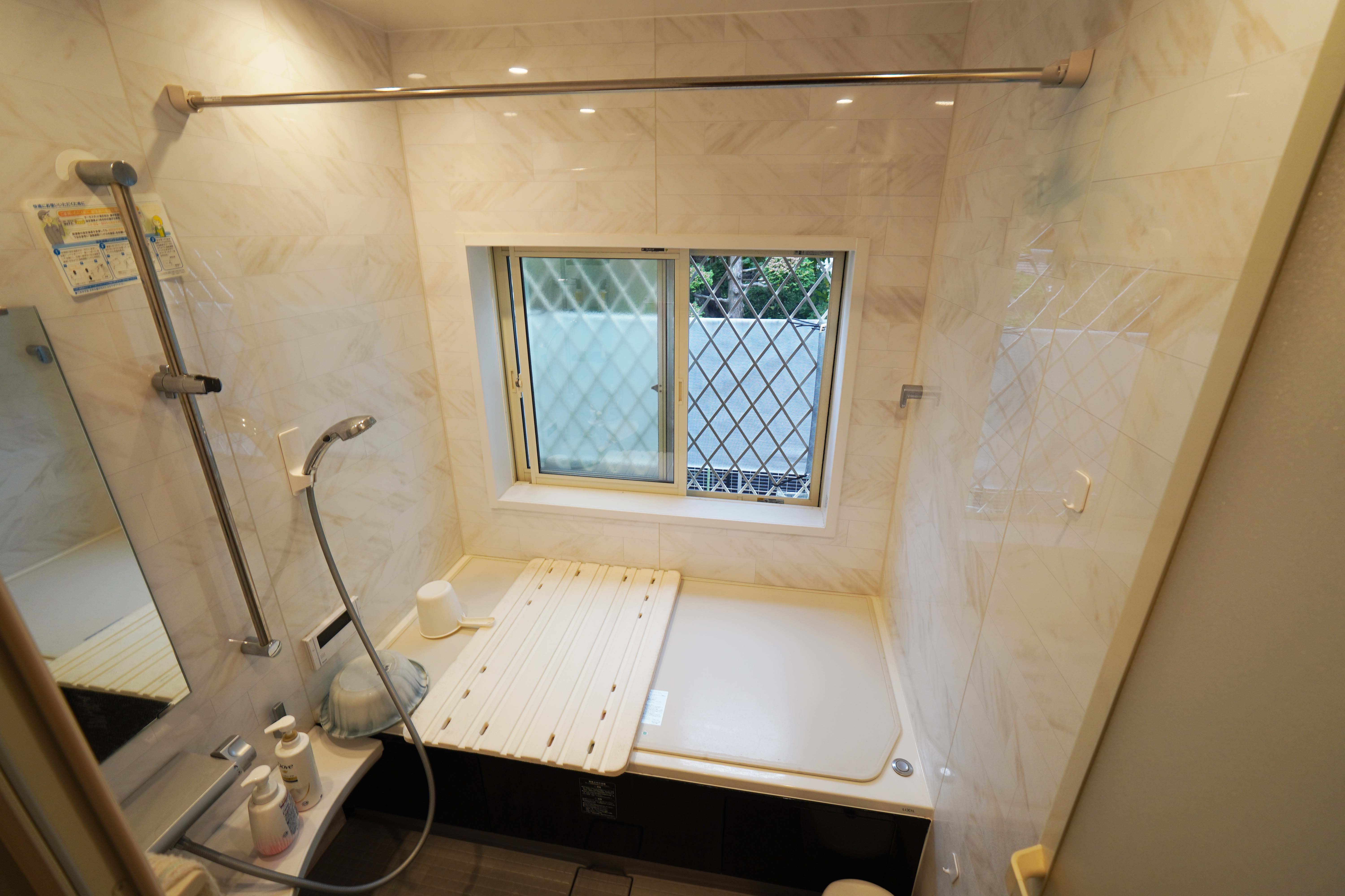 大きな換気窓が嬉しい浴室。とても明るい印象です。