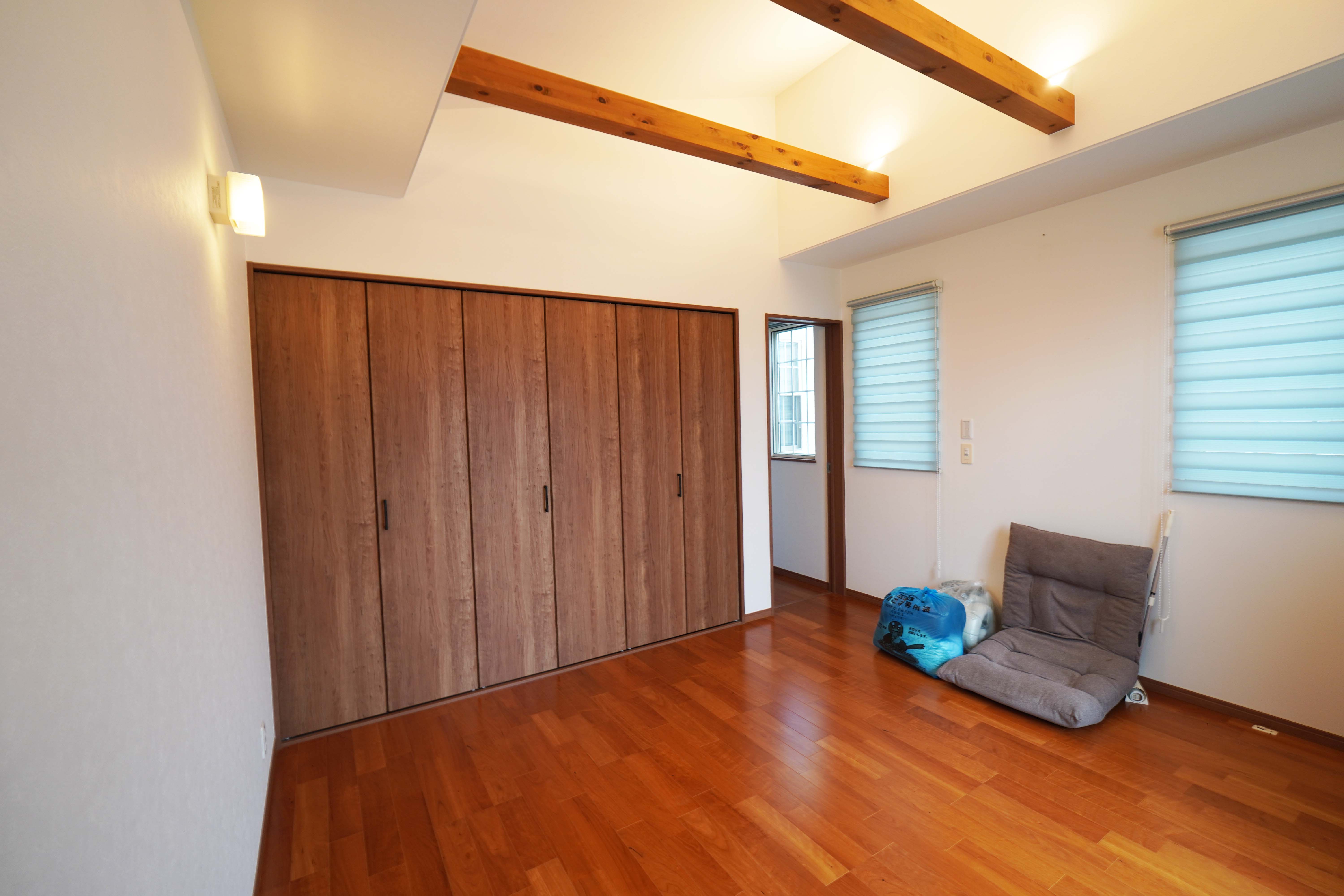 2F 8帖洋室。二面採光で明るい空間です。大きなクローゼットがあり収納には困りません。