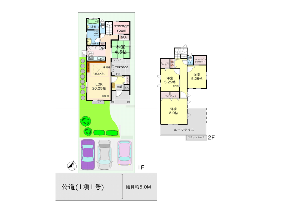 □接道幅員:南側、約5.0M公道(1項1号)に約8.01M接道