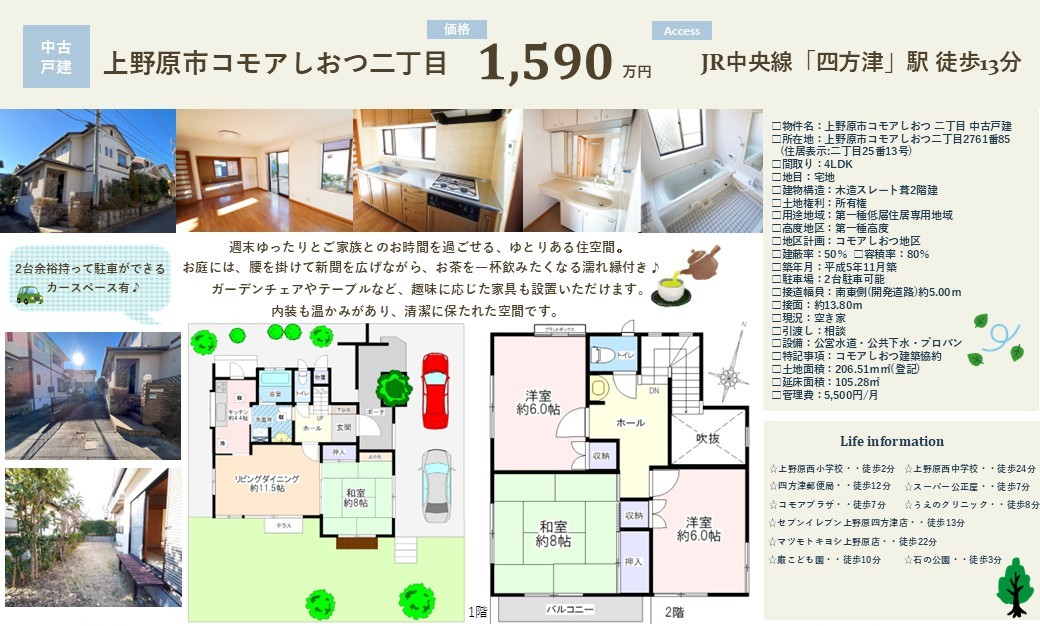 本日は【お預かり物件】上野原市コモアしおつ二丁目 中古戸建のご紹介です。