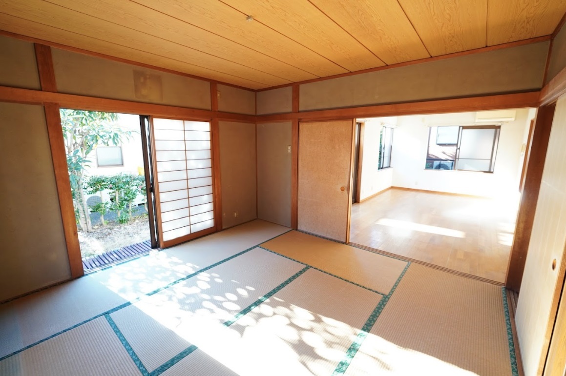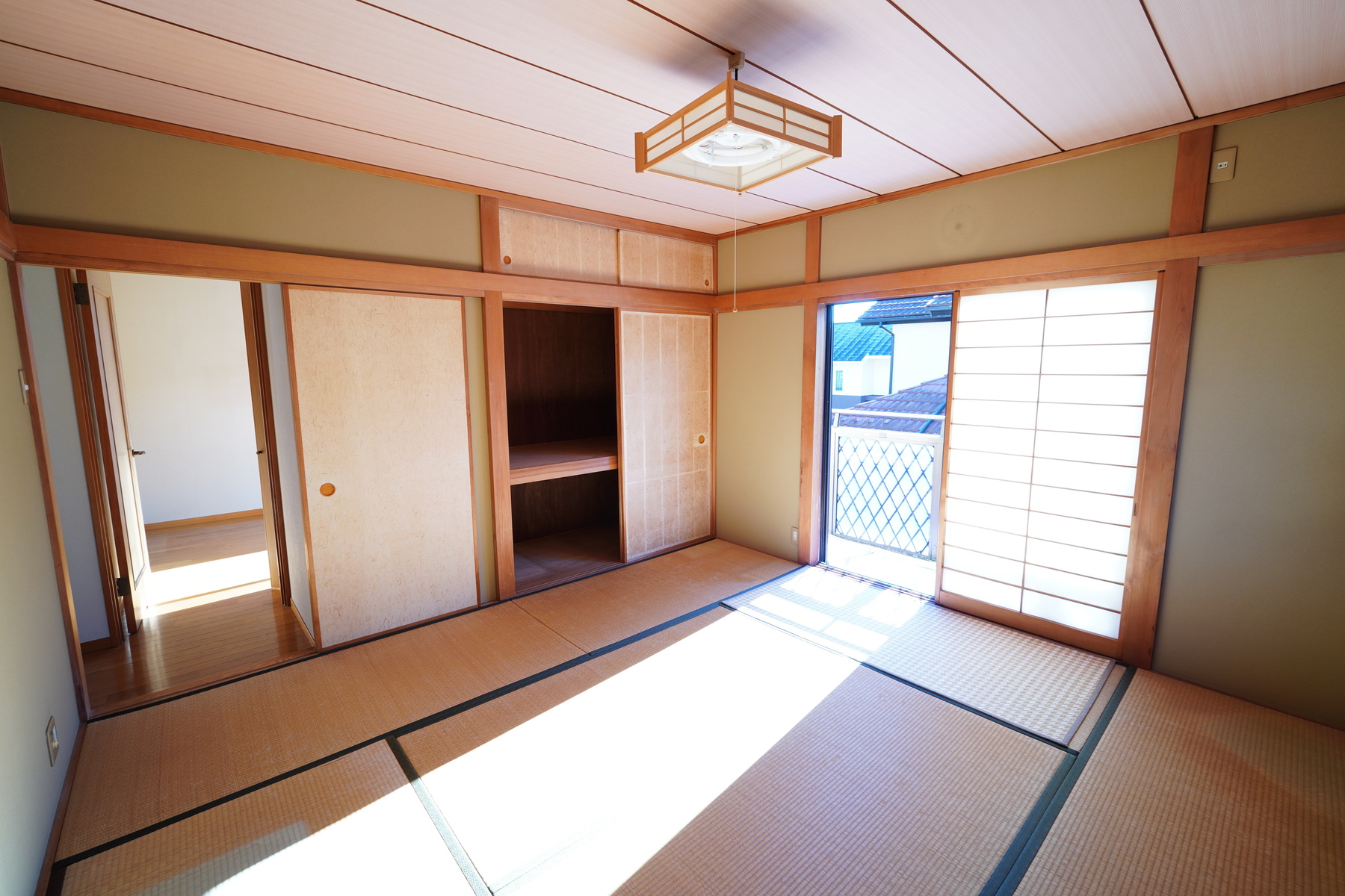 2階8帖の和室。二面採光かつバルコニーと繋がっており陽当たり良好です。