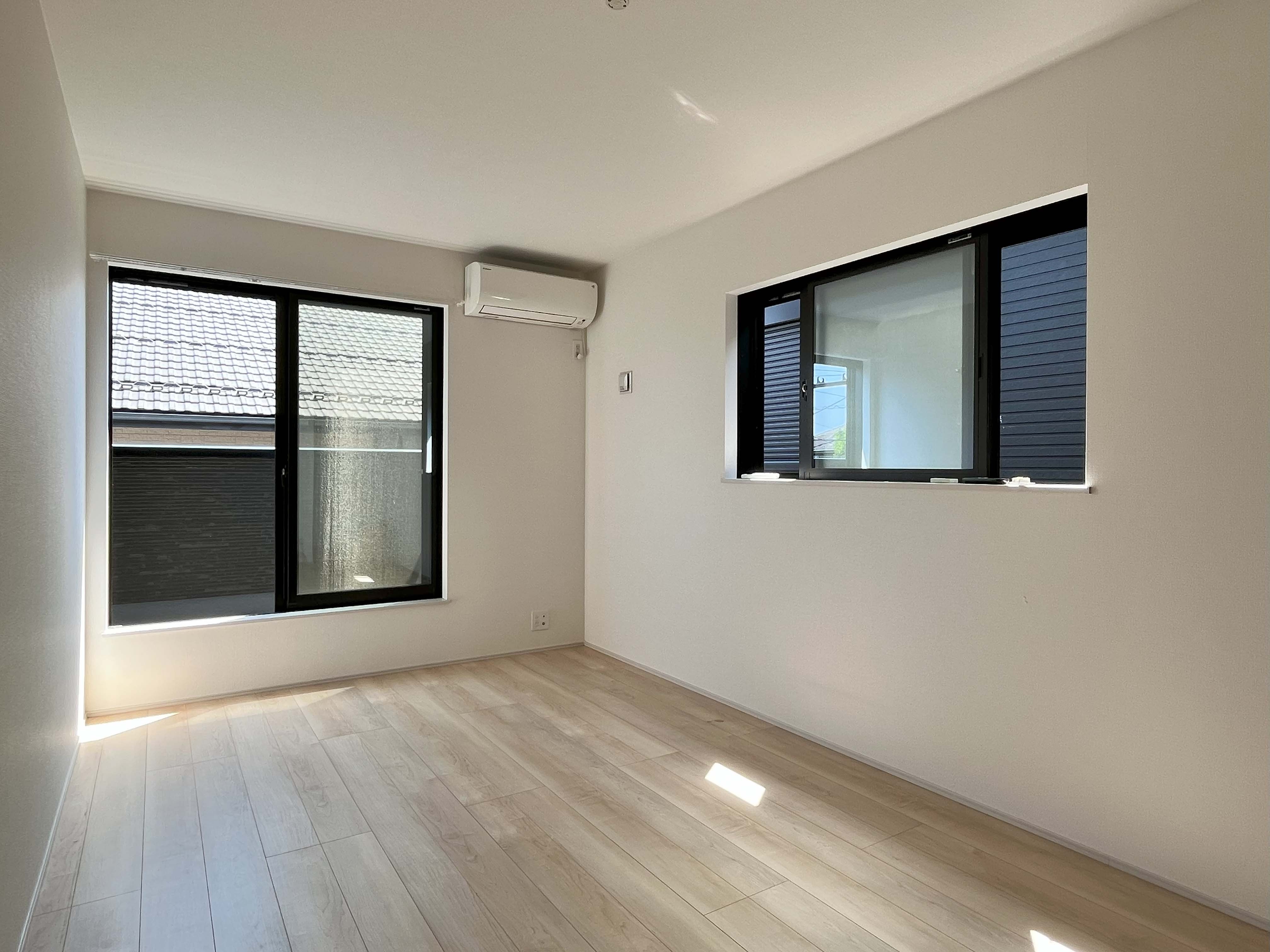 2階6帖洋室。クローゼットと収納がございます。二面採光なので明るく、風通しも良いです。