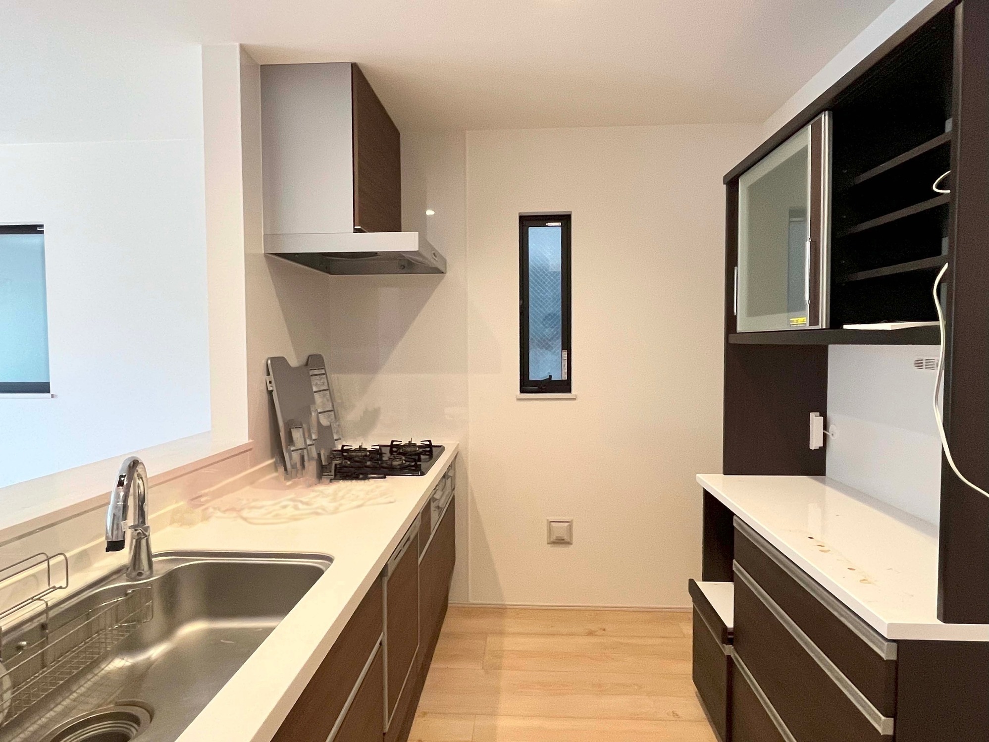 タッチレス水栓が魅力的なカウンターキッチン。食器洗浄機が付いております。