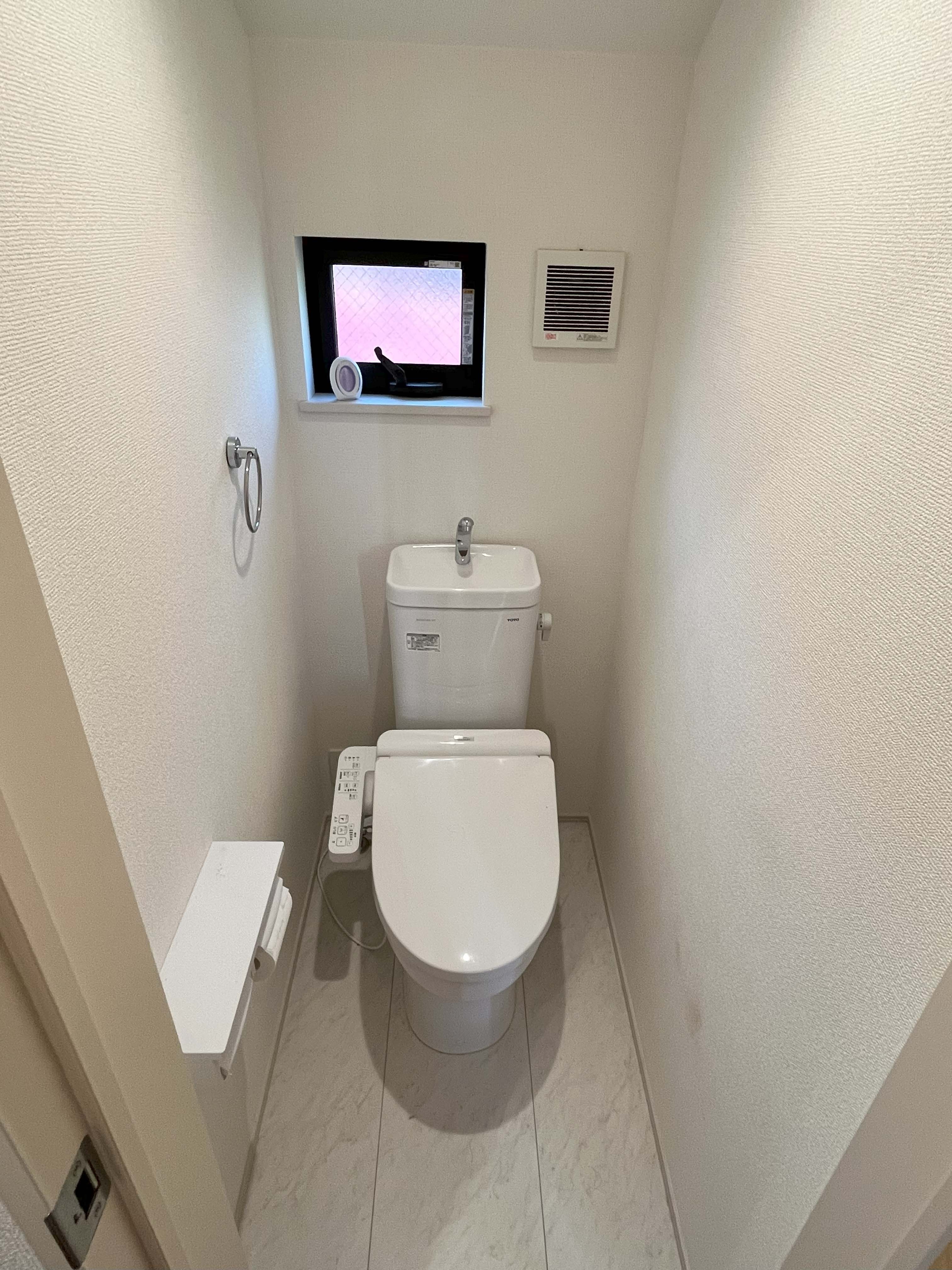 温水便座洗浄機付のお手洗い。小窓が付いているのもうれしいポイントです。