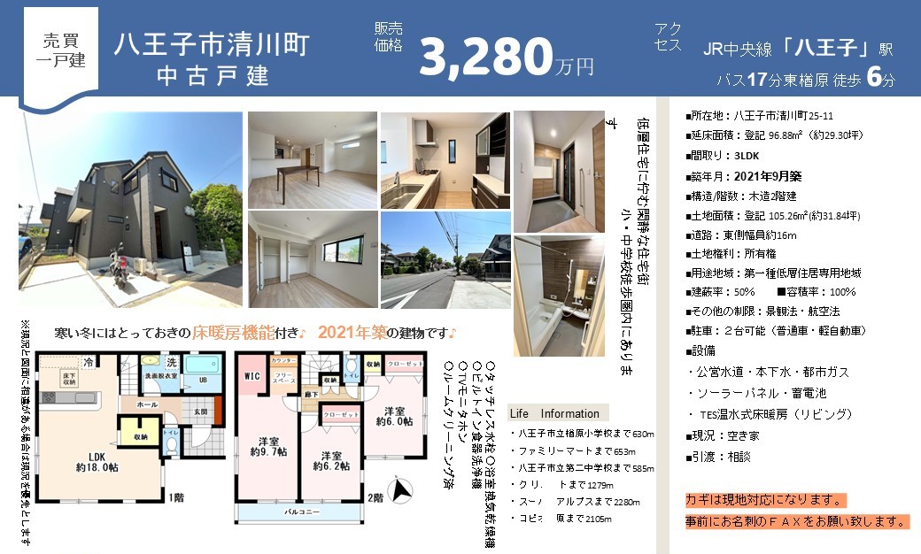 本日は【お預かり物件】八王子市清川町 中古戸建のご紹介です。