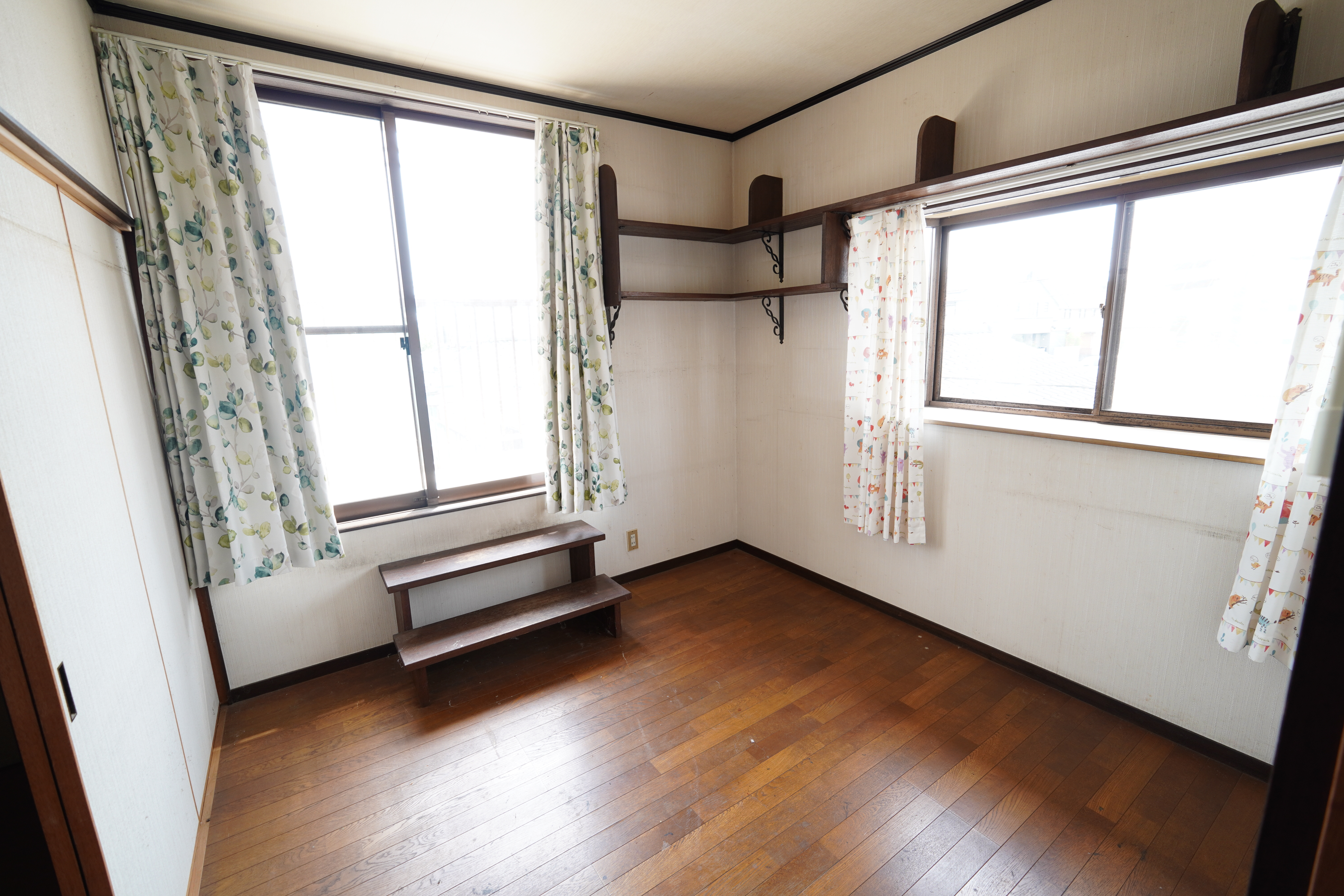 2階 4.5帖洋室。こちらも二面採光となっており、このお部屋からベランダに出ることができます。