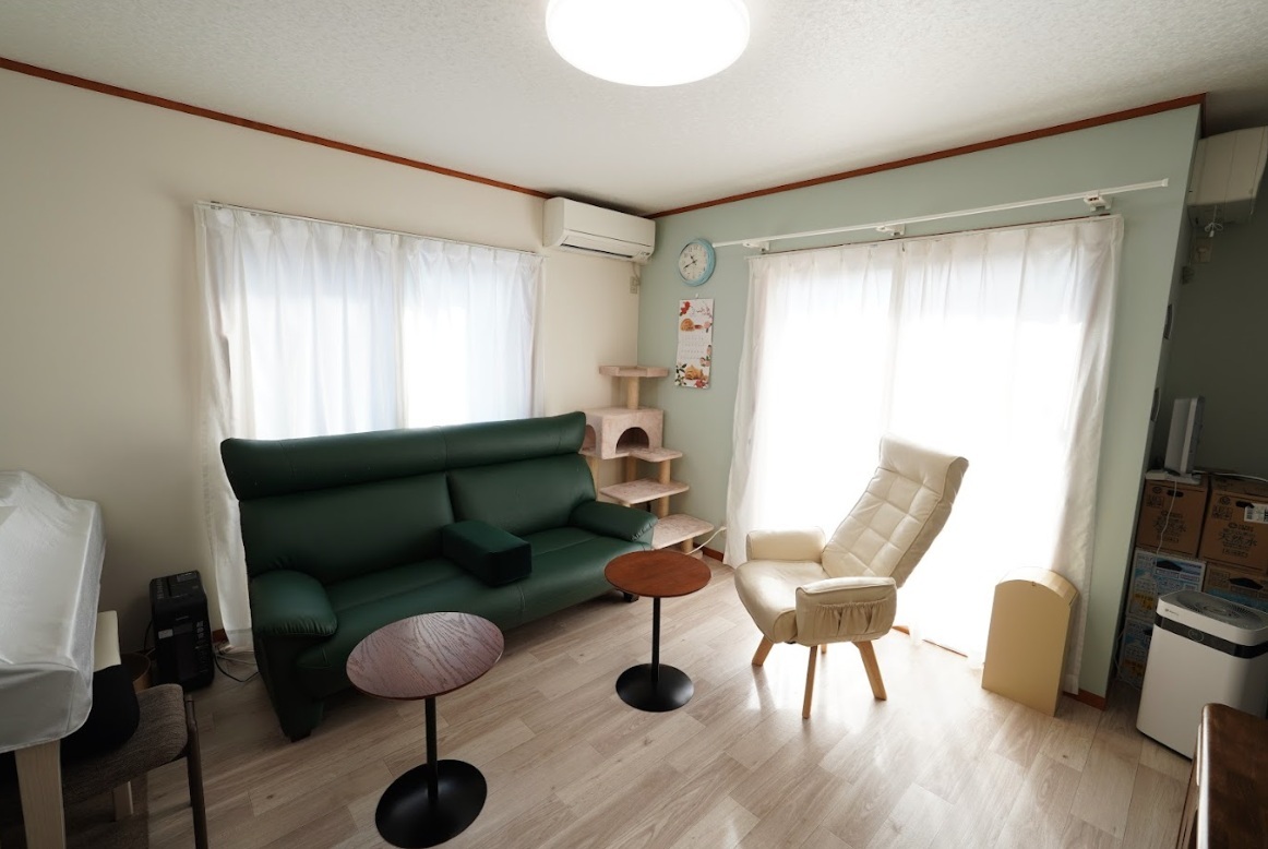 二面採光で明るい陽光が差し込むリビングルーム。暖かくお過ごしできます。