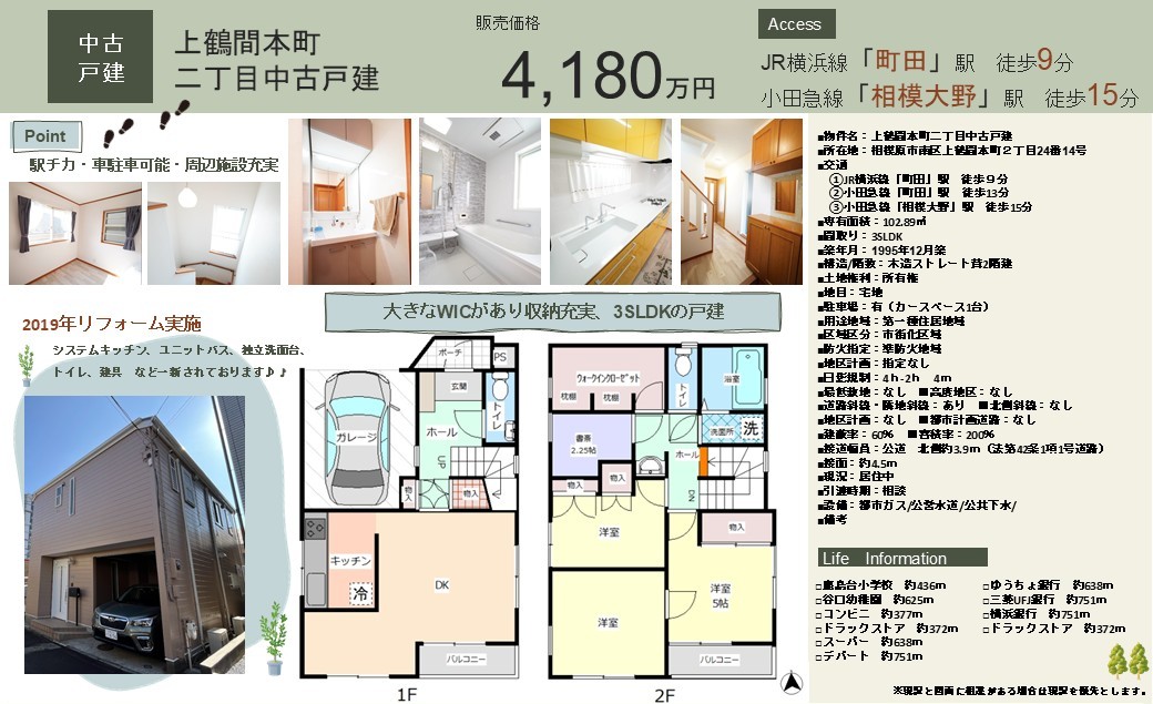 本日は【お預かり物件】相模原市南区上鶴間本町二丁目 中古戸建 4,180万円のご紹介です。