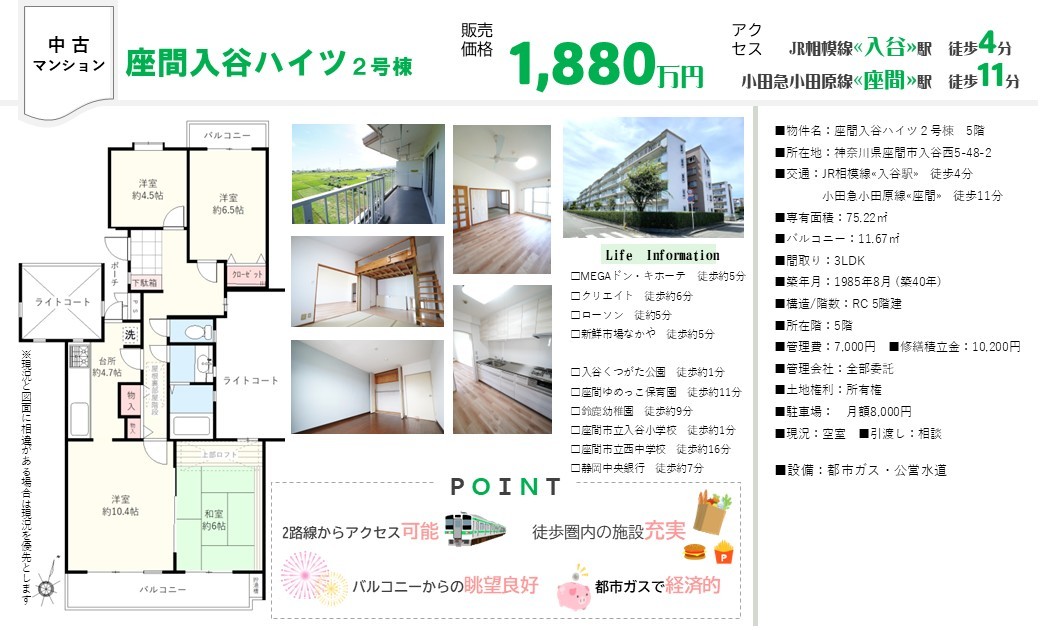 本日は【お預かり物件】座間入谷ハイツ 2号棟 1,880万円 のご紹介です!