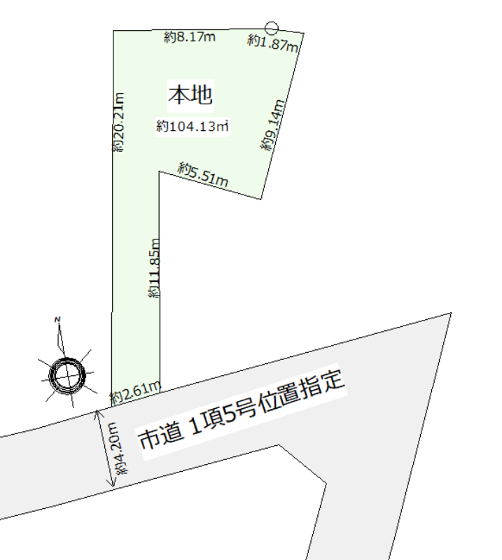 ■接道幅員:①南側(市道)幅員:約4.20mに約2.61m接道