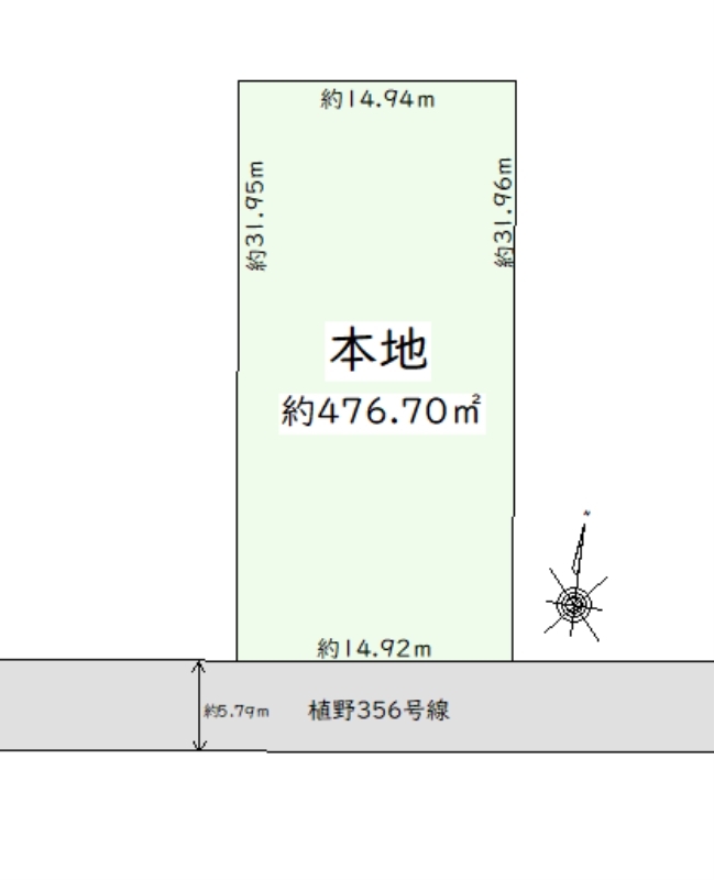 ■接道幅員:①南側(植野356号線)幅員:約5.79mに約14.92m接道