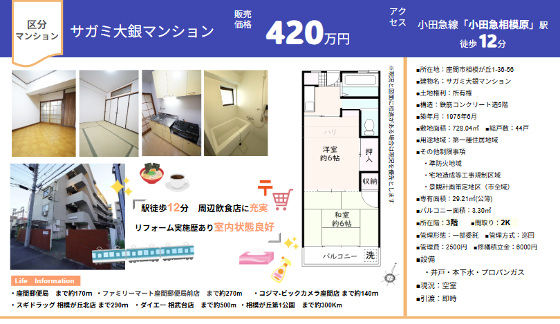 本日は【弊社売主物件】サガミ大銀マンションのご紹介です。